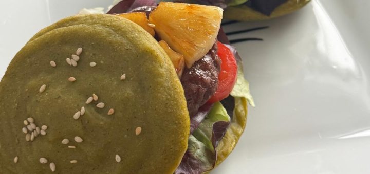 PETITS PAINS À LA BETTERAVE, POULET ET AUBERGINES GRILLÉES, SAUCE MAISON