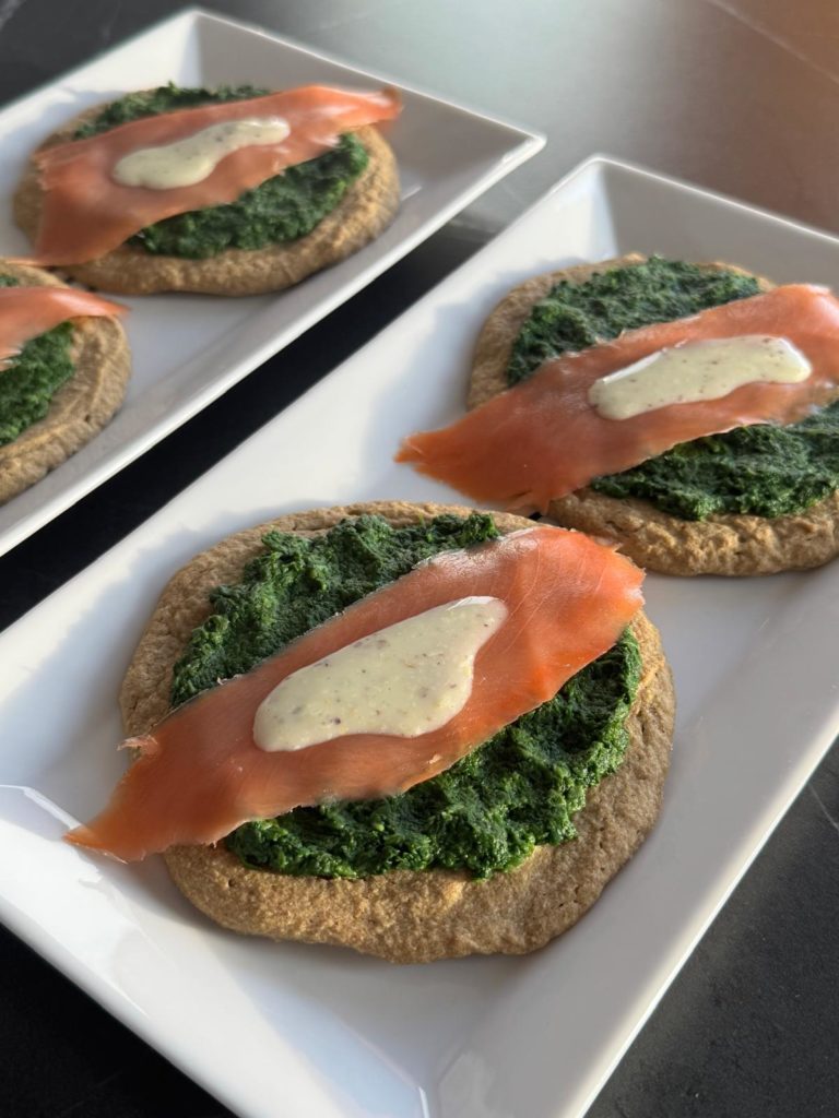 - Quand les galettes de sarrasin sortent du four, déposer les épinards dessus