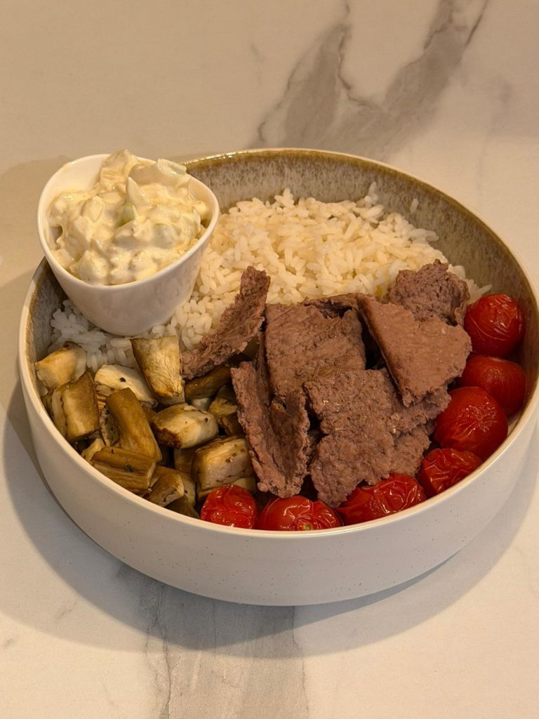- Préparer la sauce en mélangeant le yaourt avec les oignons grillés, les épices et mélanger